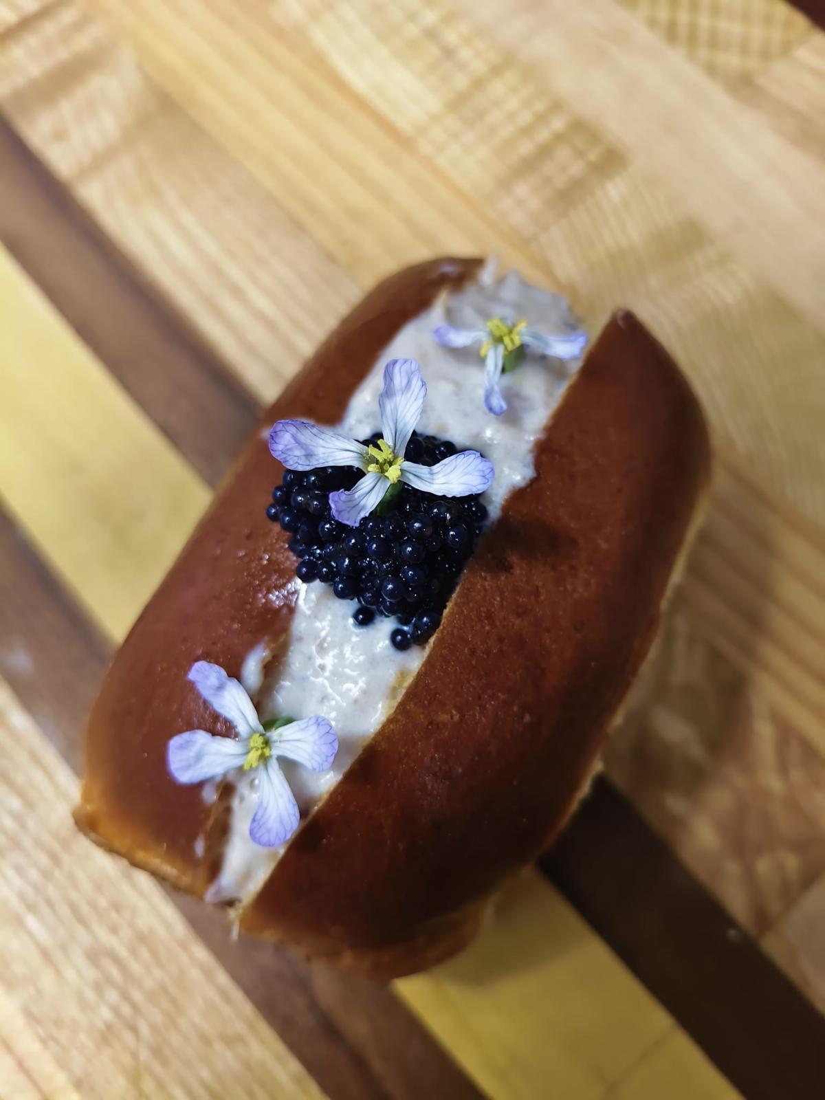 Disponer la mezcla sobre una base de “Mini hot dog beach”. Finalizar el plato con huevas de lumpo distribuidas de manera armoniosa y decorar con flores de rabanito, que aportarán frescor, color y un matiz ligeramente picante.