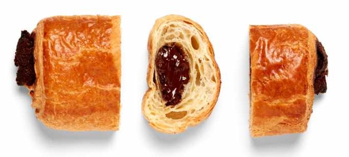 Napolitana clásica rellena de un chocolate explosivo. Una tentación que fascina a todos los paladares.